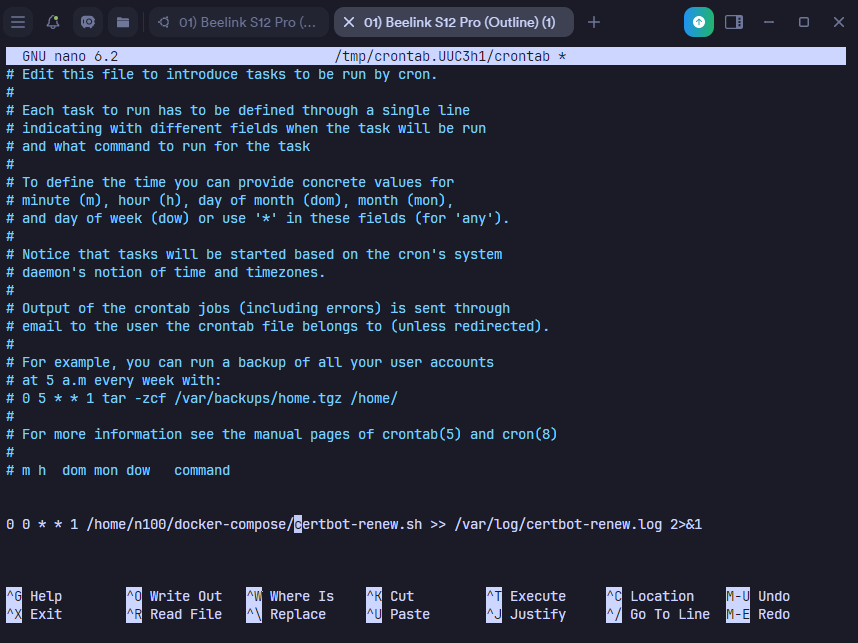 0 0 * * 1 /home/n100/docker-compose/certbot-renew.sh >> /var/log/certbot-renew.log 2>&1