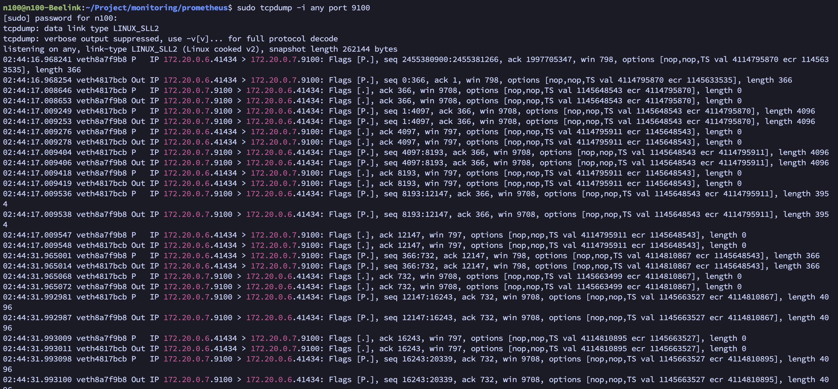 - 이때 node_exporter가 컨테이너 안에 갇혀있다보니 실제로 쳐다보고 있는 것은 자기 컨테이너 내부의 네트워크 랜이라서 그냥 eth0임…