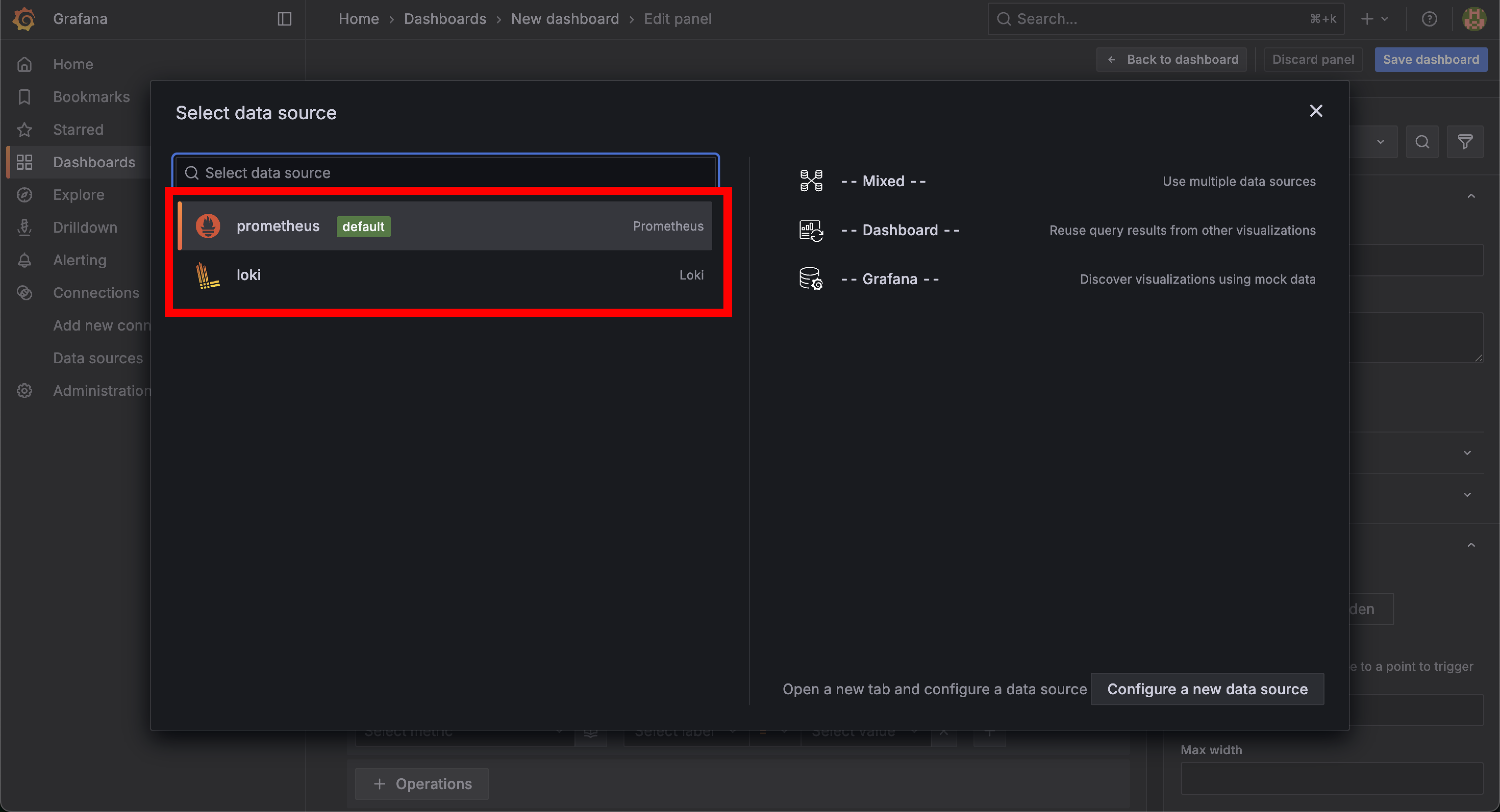 - URL에 Loki 서비스 이름 + 포트 조합으로 URL 입력