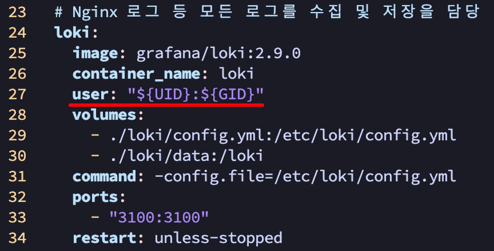 - 그런데 이제 호스트 볼륨 마운트 해가지고 권한 문제가 생긴 것이었다... (호스트와 컨테이너 각각에서 Loki 권한이 달라서)