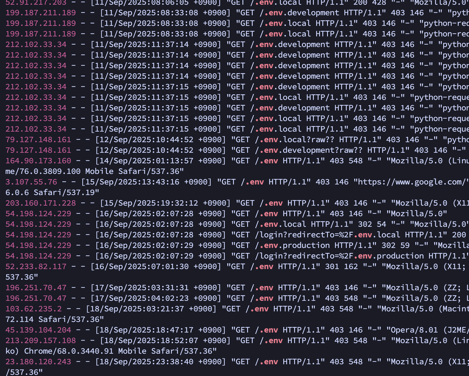 이 2천개에 육박하는 IP들은 전부 .env를 요구하거나, 어떻게든 치명적인 파일, 정보 한번 빼내보려고 아득바득 달겨드는 악성 유저 & 봇들이다