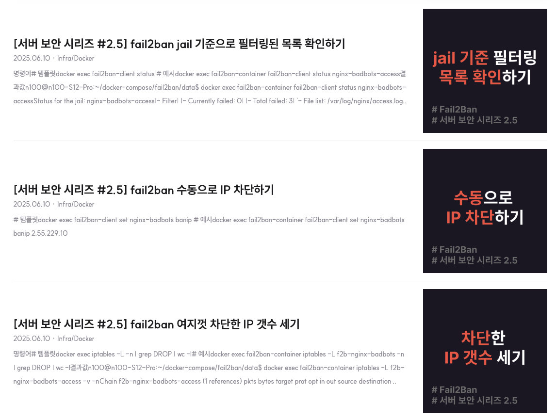 | 서버 보안 설정 시 주의사항과 실제 공격패턴 (feat. Fail2Ban & 내 IP 예외처리) (2) | 2025.08.07 |