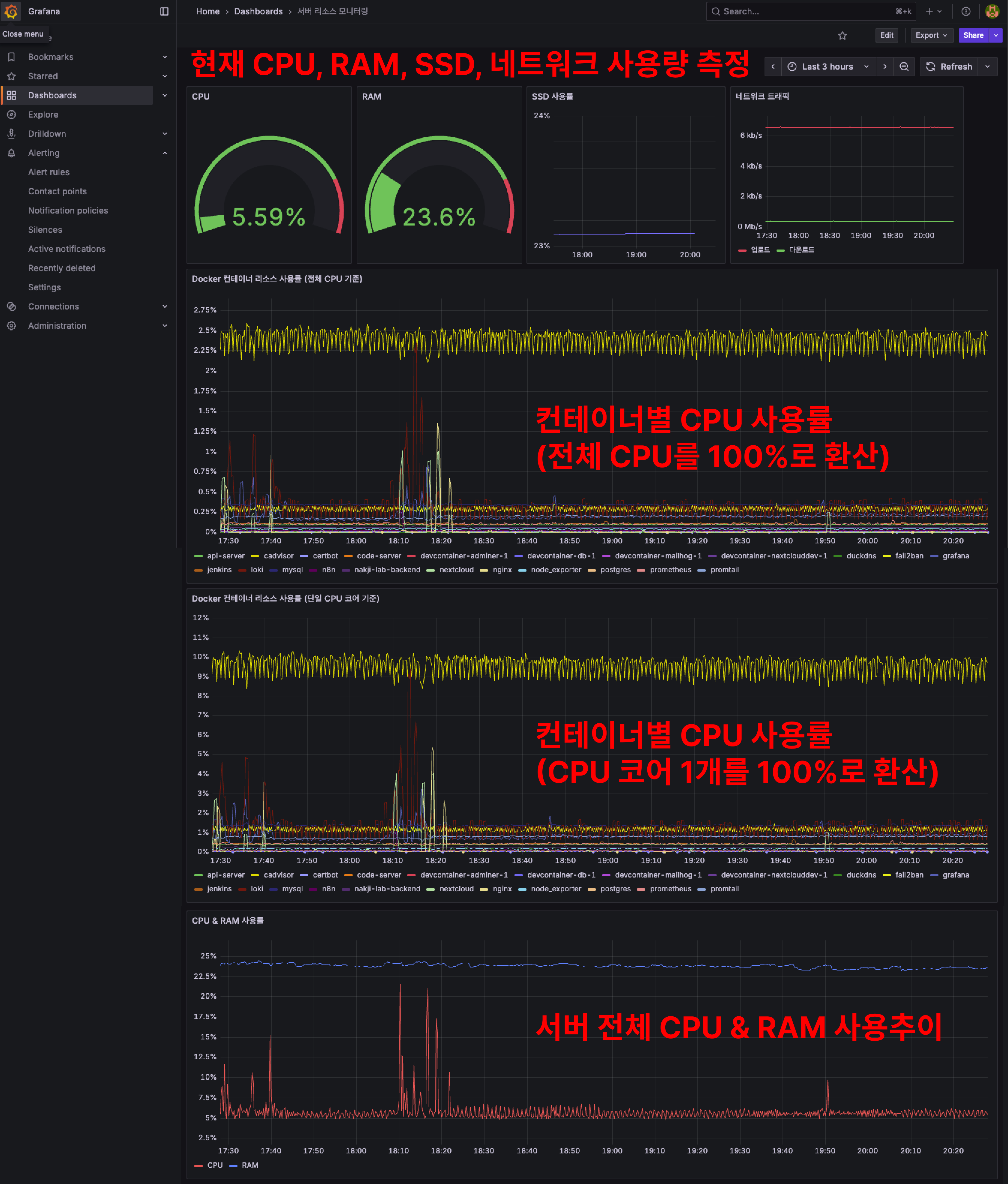 - 또한 CPU 전체를 둔 이유는 서버 과부하 모니터링용이다