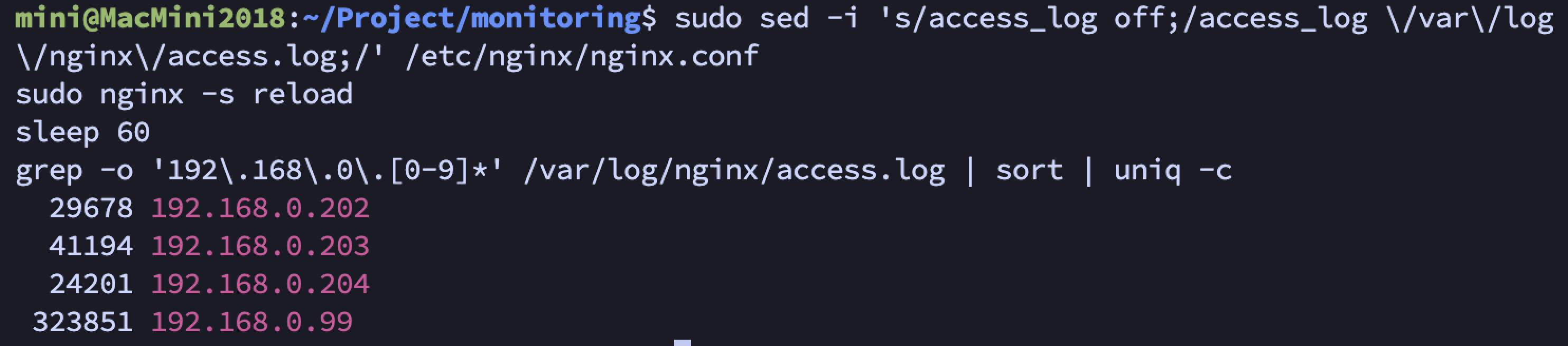 - nginx에서 각 서버로 넘기는 비율을 체크했다