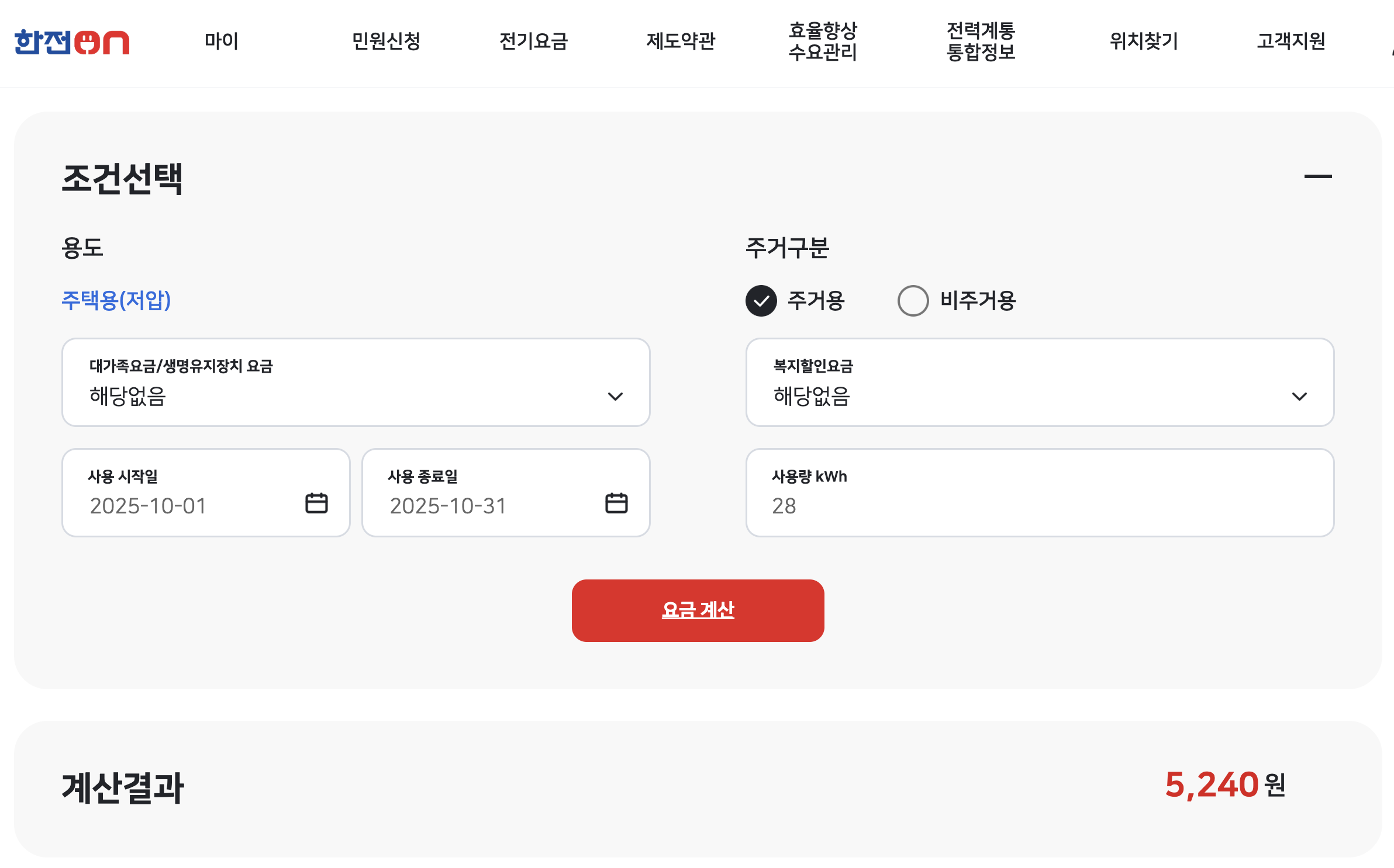한전 계산기 앱에 올림해서 계산하면 달에 5300원정도 나온다