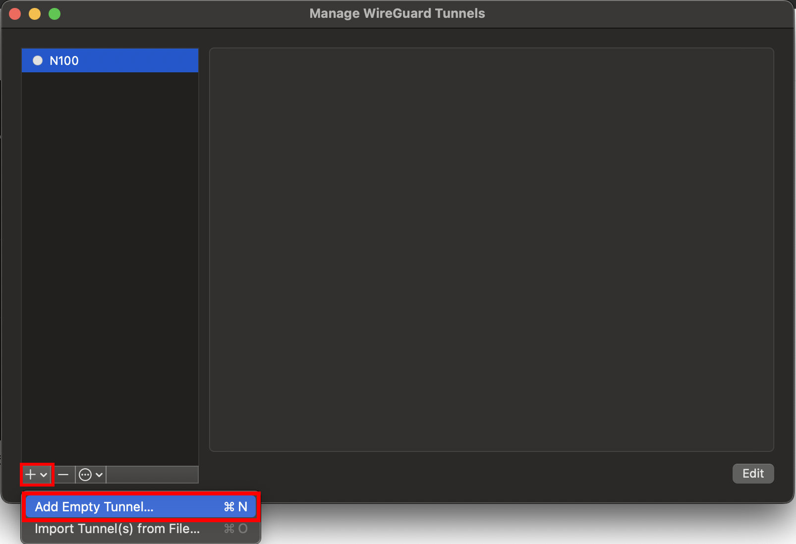 - '+' 클릭 & Add Empty Tunnel 클릭