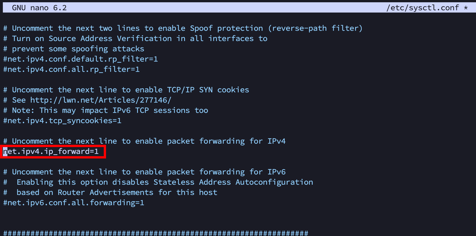 - 'net.ipv4.ip_forward=1'를 추가하거나 주석 해제를 한다