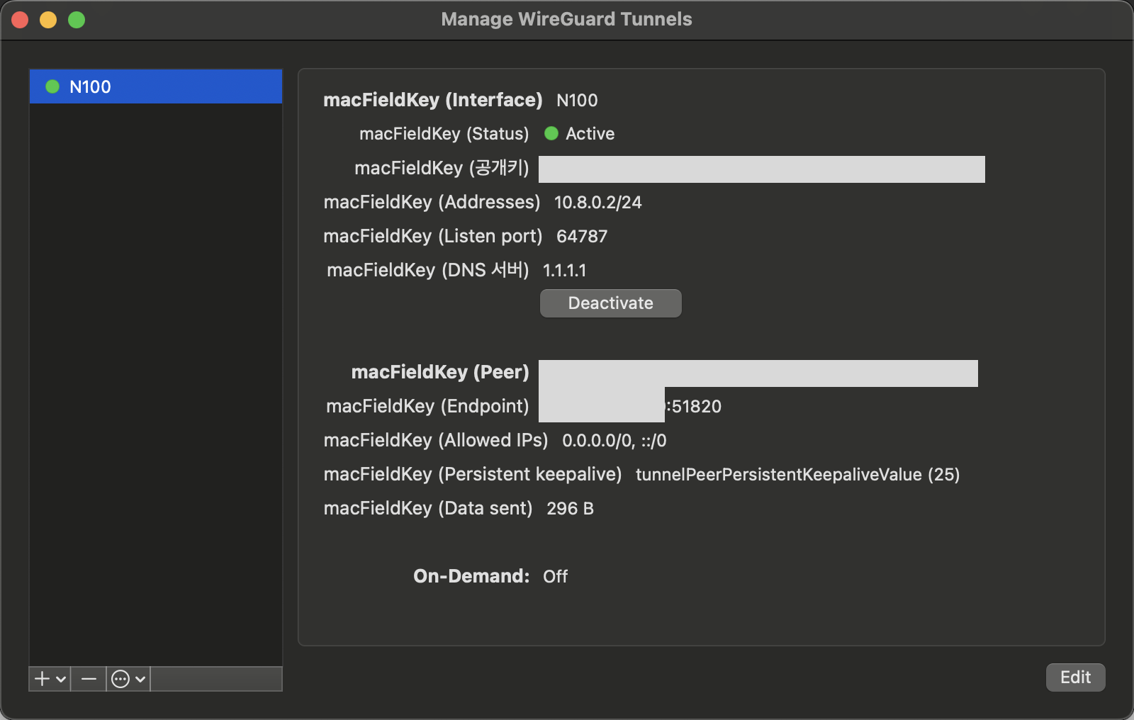 - 이제 WireGuard를 키면 activate라는 버튼이 생겼을텐데 그것을 누르면 된다