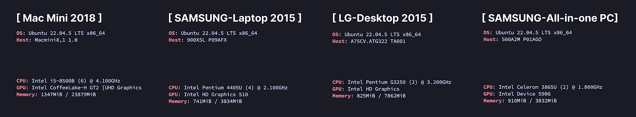 - 서버 구성은 분산 구조 구축했을 때의 기존의 홈서버 4대 그대로 사용했다