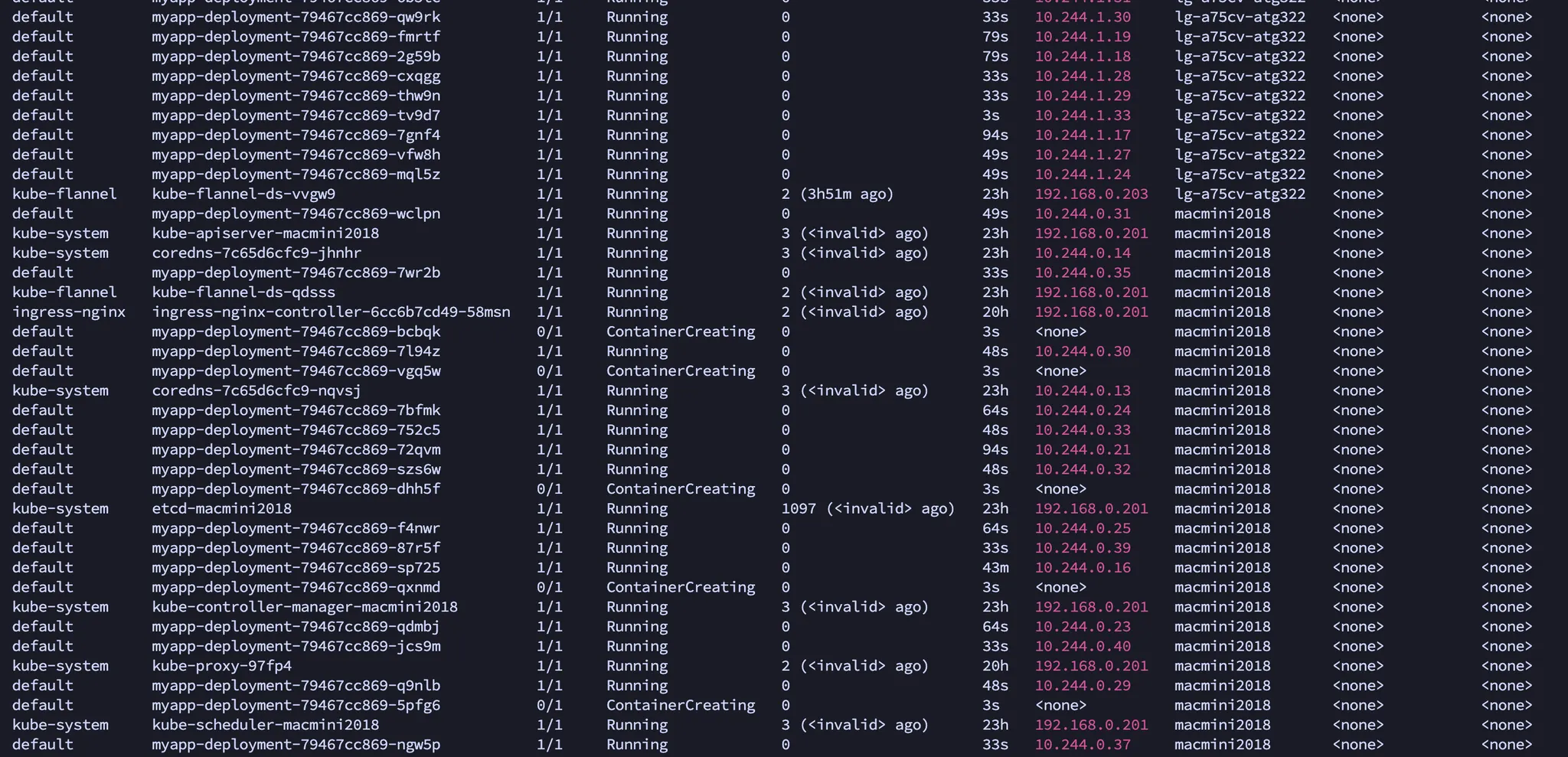 - 띄우고 나면 아래 명령어를 통해 띄워져 있는 pod들을 확인할 수 있음