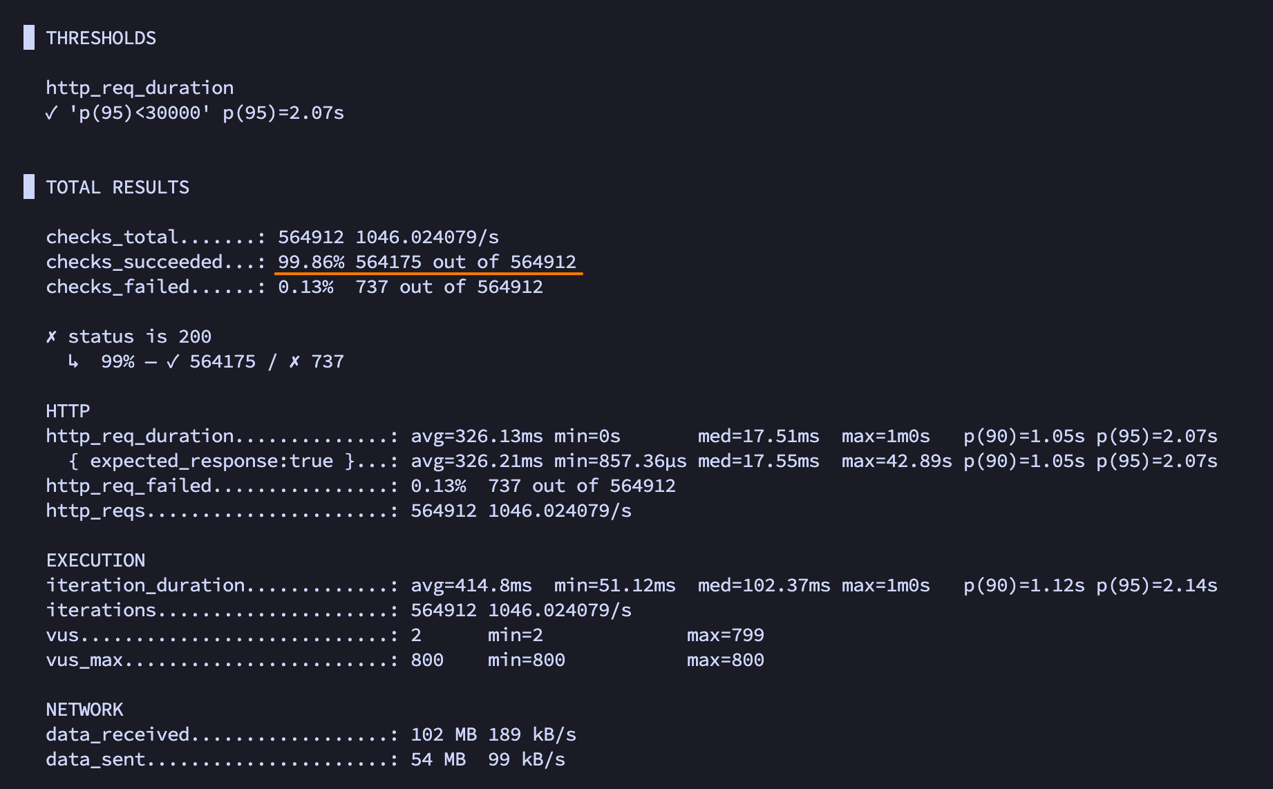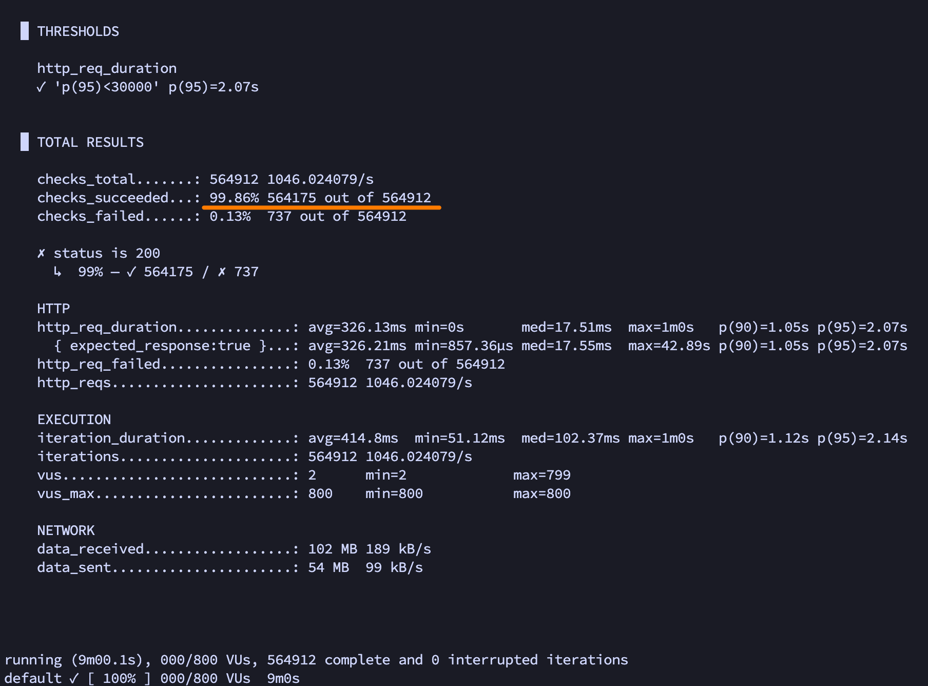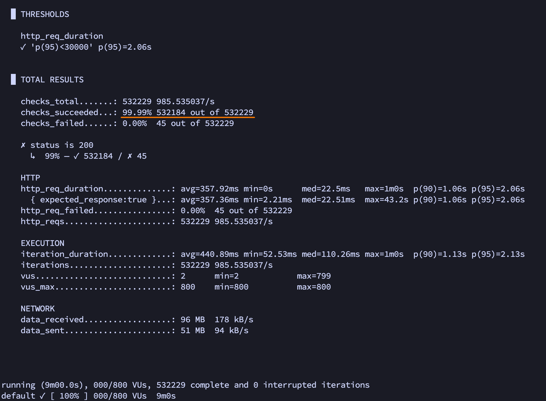 - 이제는 의미없어진 k6 부하테스트는 여전히 99%