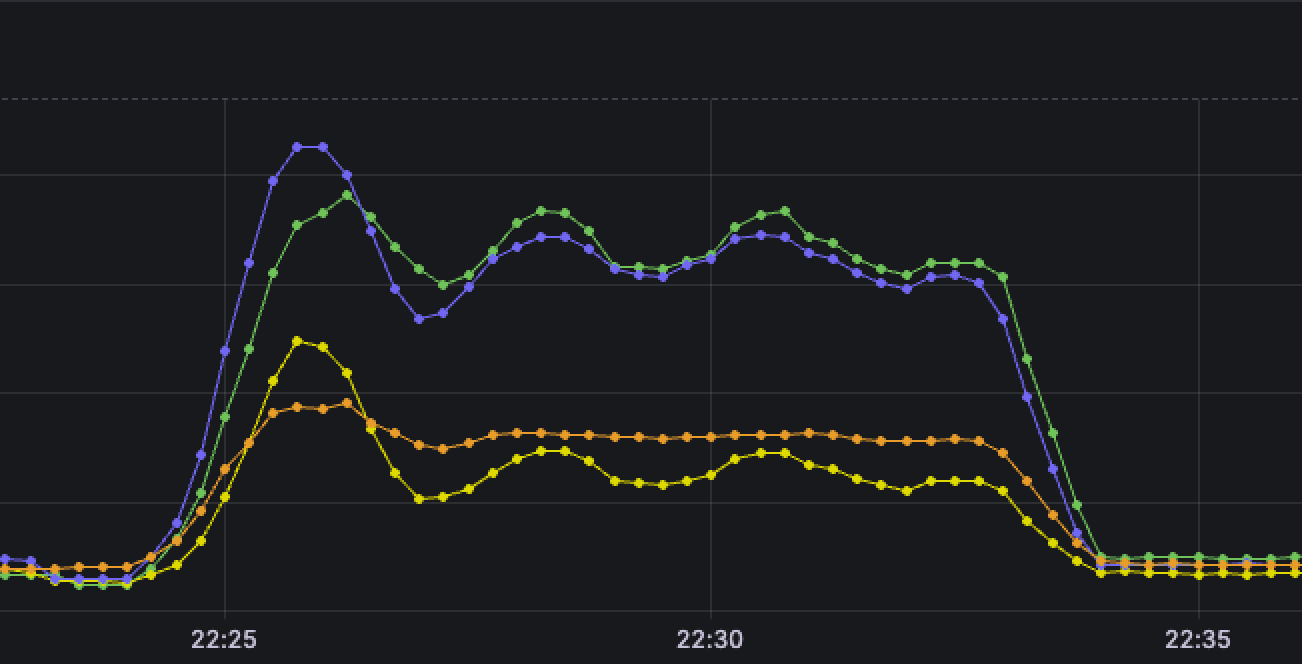 - 일단 그래프를 보다시피 전보다 점진적으로 부하가 늘어나긴 하지만, 중간중간 들쑥날쑥하다