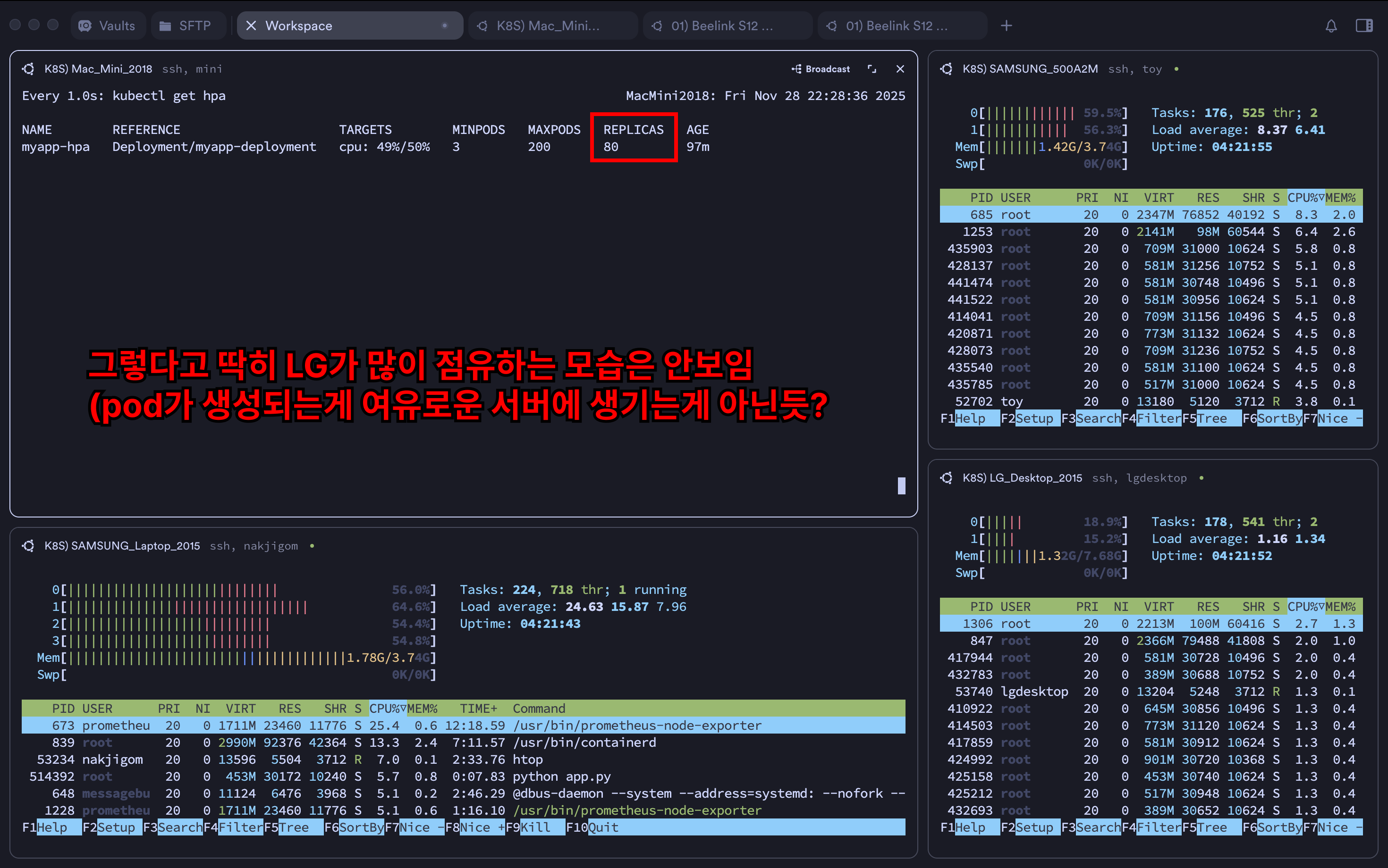 - 근데 그렇다고 뭐 LG 데스크탑이 더 많은 파드(app 파드)를 가져가고 이런 것은 없었다
