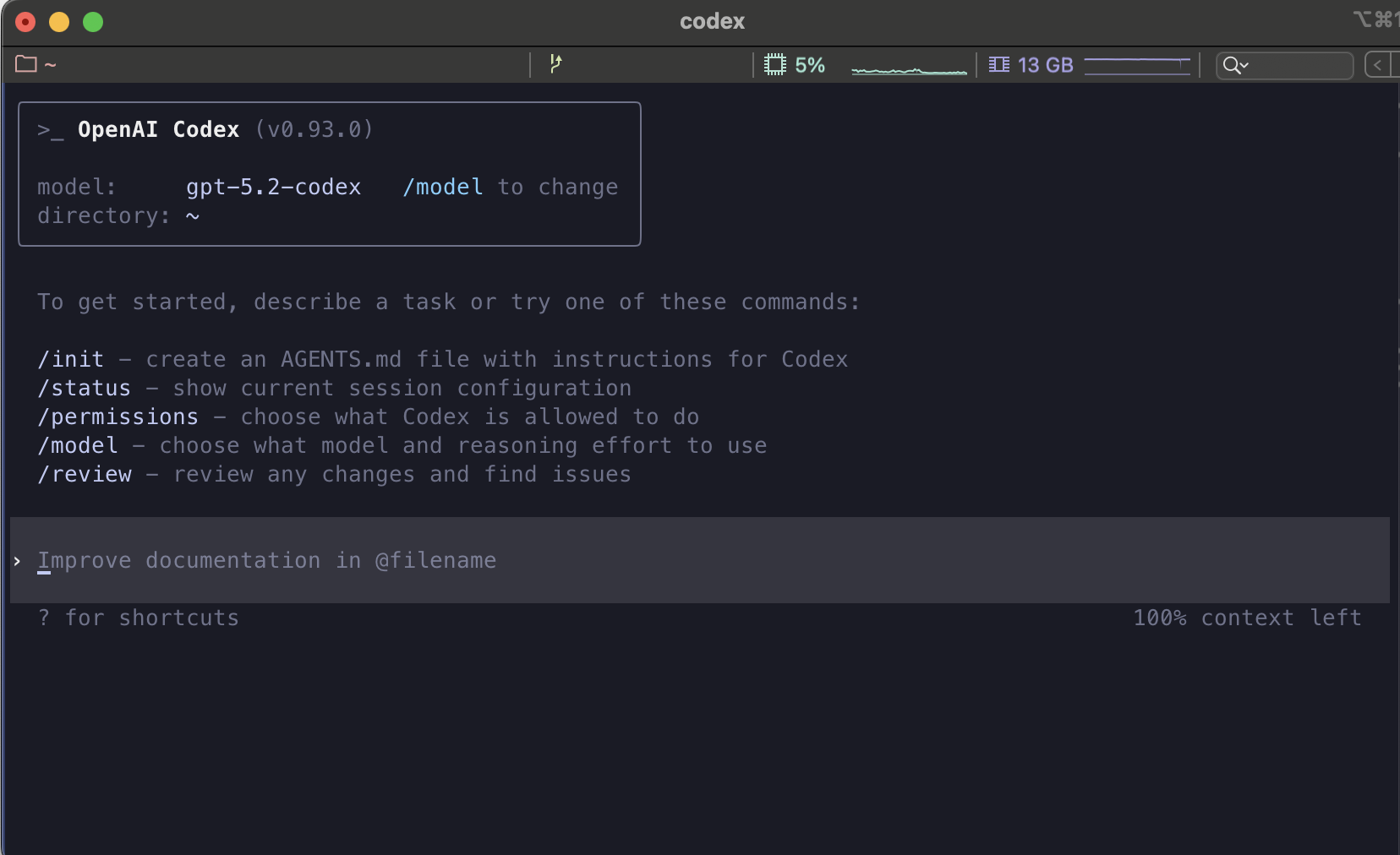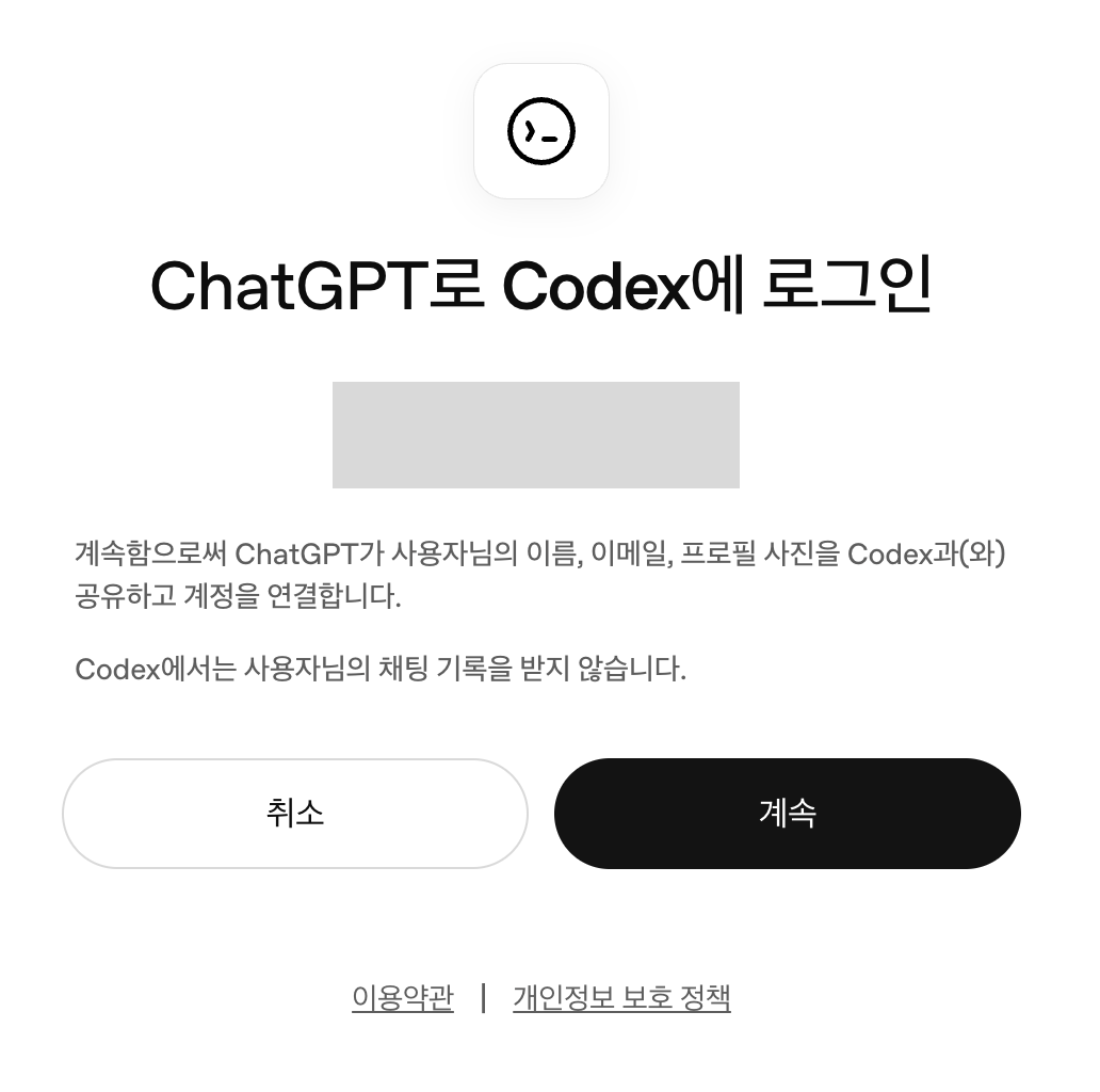 - 실행 명령어는 그냥 터미널창에서 'codex' 입력하고 엔터치면 된다