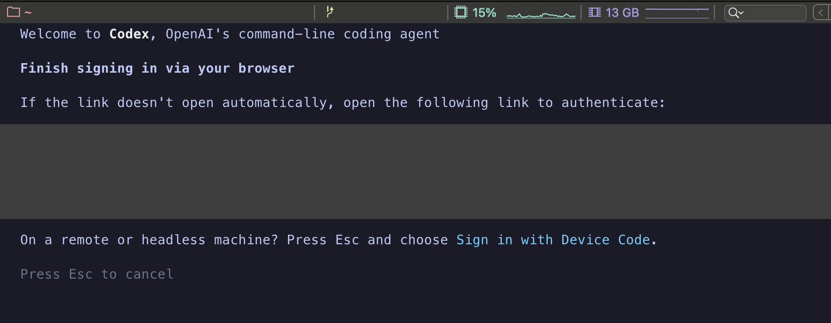 - 그러고 나면 이제 CLI에서 Codex를 사용할 수 있게 된다!