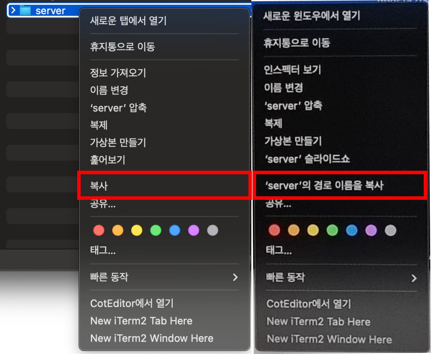 Finder에서 마우스 우클릭 + Option키 꾹 누르기