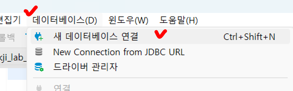 데이터베이스 - 새 데이터베이스 연결 클릭
